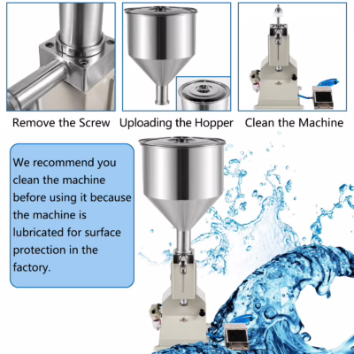 เครื่องบรรจุของเหลวนี้มาพร้อมกับถังบรรจุขนาดใหญ่ความจุ 10 ลิตร ความเร็วในการบรรจุอยู่ที่ 20-60 ครั้ง/นาที และปริมาณการบรรจุอยู่ที่ 10-100 มิลลิลิตร ความเร็วและปริมาณเหล่านี้สามารถปรับได้ตามความต้องการของคุณ