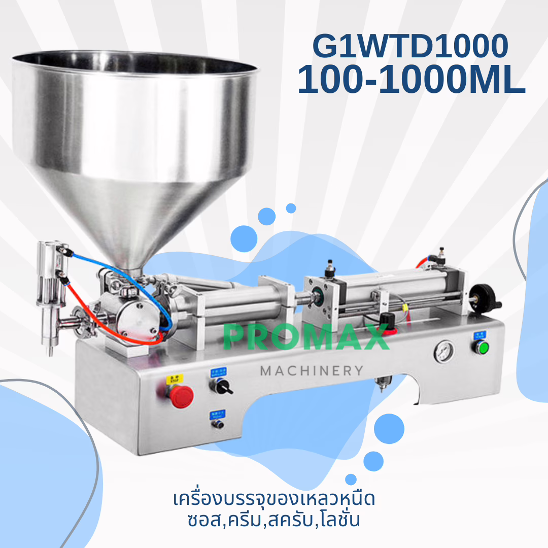 บรรจุง่าย แม่นยำ เหมาะสำหรับของเหลวข้นและหนืด เช่น ซอส น้ำพริก ครีม G1WTD คือเครื่องบรรจุของเหลวที่ออกแบบมาเพื่อบรรจุสินค้าที่มีความหนืด หรือข้นมากเป็นพิเศษ เช่น ซอส น้ำพริก ครีม สครับ น้ำจิ้ม ฯลฯ โดยมาพร้อมกับ Hopper (ถังกรวย 30ลิตร) ด้านบนเพื่อช่วยให้การป้อนวัตถุดิบเป็นไปอย่างต่อเนื่อง ไม่ติดขัด เป็นเครื่องบรรจุของเหลวที่ทำงานด้วยระบบ นิวเมติกส์ โดยการควบคุมการบรรจุด้วยกระบอกสูบ ปรับตั้งปริมาตรการบรรจุด้วย เซ็นเซอร์ ( SENSOR SWICH) ทำให้ปริมาตรการบรรจุแม่นยำสูง คลาดเคลื่อน เพียง +- 1 % เท่านั้น