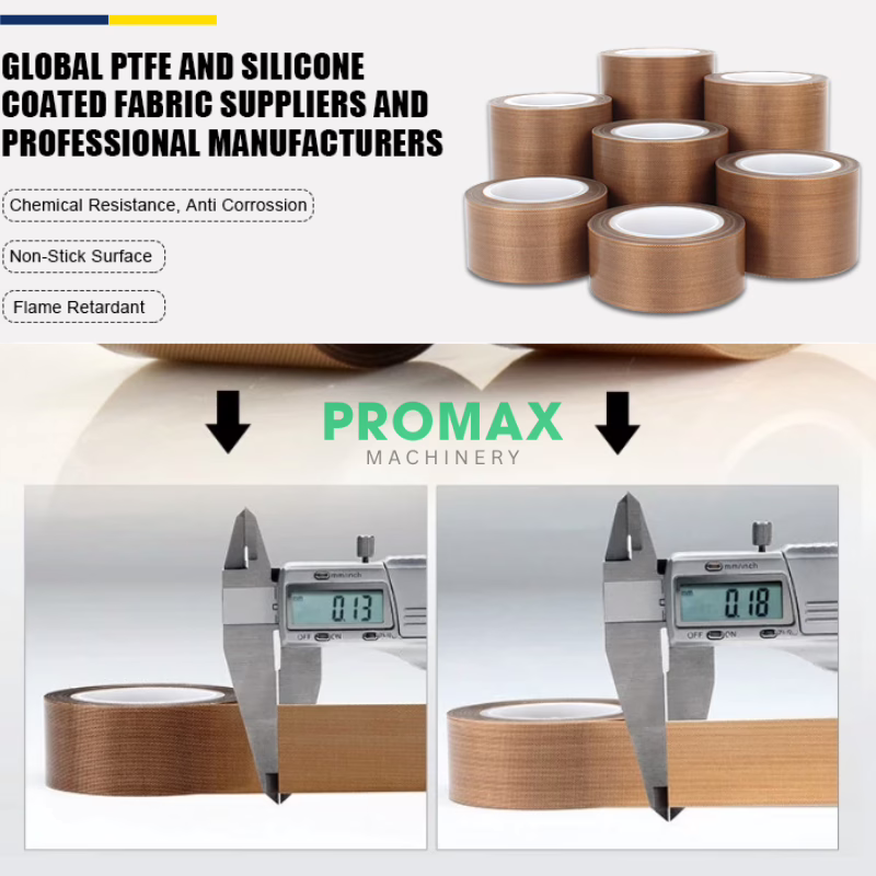 PTFE Tape หรือ ผ้าเทปทนความร้อน เป็นวัสดุยอดนิยมในงานอุตสาหกรรมที่ต้องการความทนทานต่อความร้อนสูง แรงเสียดทานต่ำ และทนต่อสารเคมี เทปชนิดนี้ผลิตจาก เส้นใยไฟเบอร์กลาสเคลือบ PTFE (Polytetrafluoroethylene) ทำให้มีคุณสมบัติพิเศษเหนือกว่าเทปทั่วไป ใช้งานได้ทั้งในสายการผลิต เครื่องซีลถุง เครื่องซีลสูญญากาศ และงานซ่อมบำรุงเครื่องจักรต่างๆ